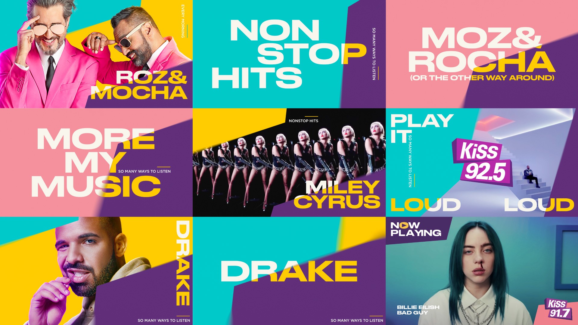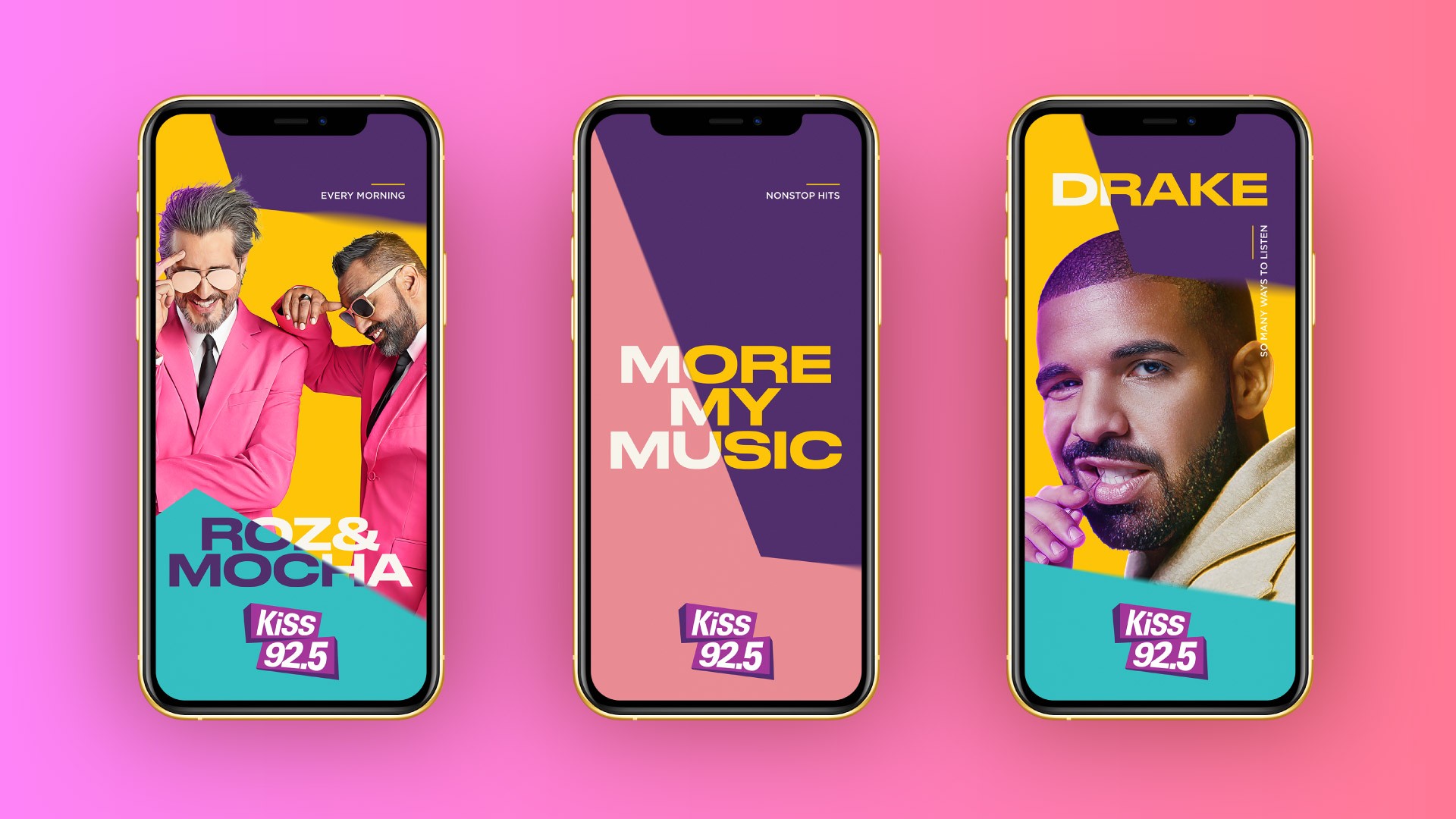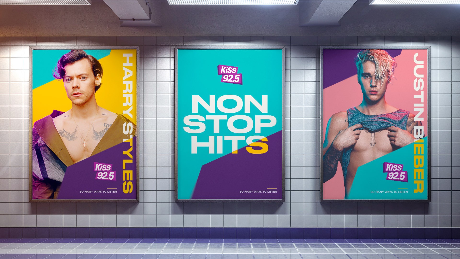 KiSS underwent a transformation from a traditional radio station to a modern music brand with a new visual identity that is uplifting, energetic, and ageless. The design strategy reflects the vibrant, non-stop pulse of KiSS, with elements of the logo crisscrossing and colliding to represent the brand's energetic DNA.